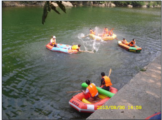 第二天早餐后我们来到了华东地区最后一篇原始森林、国家级野生动植物自然保护区石台牯牛降,游览参观国家级自然保护区、AAAA级景区石台牯牛降龙门风景区,游览“严家古村” 居住着东汉著名隐士严子陵的后裔,典型的徽州民居古建筑保存完好。村中有老磨房、古祠堂和写着红军北上抗日直至大跃进、文化大革命等各个时期标语的“标语墙”;“情人谷”三面环山,岩壁陡峭,茂林修竹、泉水淙淙,是情侣眷属的好去处;“四叠飞瀑”象一匹硕大的四叠白练直挂崖壁,如雪似玉,曲折回环,似从天来、蜡烛峰等景点;龙门大峡谷:河马戏鳄、“龙门潭” 潭水青碧,峡谷幽深,怪石遍布,古木如盖,有百丈岩、滚石滩等景点,实为大自然创造的“无声的诗,立体的画”。 下午赴中国境内最美的河流——秋浦河怪潭漂流景区,在素有“诗之河”之美誉的秋浦河上游,河水常年澄碧清澈,两岸古柳依依,峻峰林立,美景甲天下。全程采用皮划艇体现参与性和互动性让大家更深入的亲近大自然、体验大自然,各位同事时而泛舟前行,时而驻足打起水仗,笑声连连不断。
